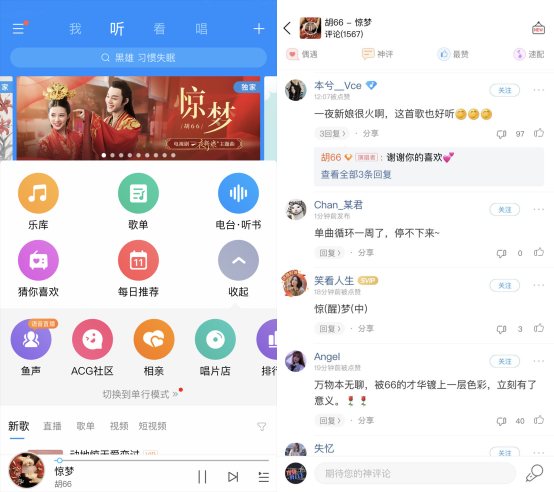 作为星曜计划的第一批音乐人,胡66已经代表酷狗音乐成为江苏卫视《音浪合伙人》的乐评人,还为黄渤参演的热门综艺《忘不了餐厅》演唱了插曲《时光无言》,网剧《拜见主宫大人》演唱了插曲《十里相思》,而此次再次出击,全新打造《一夜新娘》片头曲《惊梦》,又一次成为大获好评的热单。