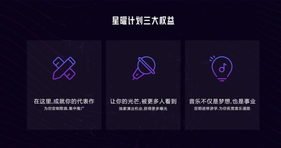 酷狗音乐将为星曜计划音乐人创作发行歌曲,集中资源推广,定制培养计划,为音乐行业输送更多元化的内容和优质好声音。酷狗音乐也将持续搭建更开放、更多元的音乐人平台,提