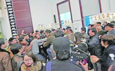 小编导读:知名绍剧表演艺术家、六小龄童的父亲六龄童章宗义的追悼会昨天在浙江绍兴举行,1月31日晚,六龄童因病去世,享年90岁。许多圈内人士冒雨赶来参加六龄童追悼会,送六龄童最后一程。而追悼会开始前,几位亲属在灵堂上绊嘴口角,并大打出手(见图),一男子