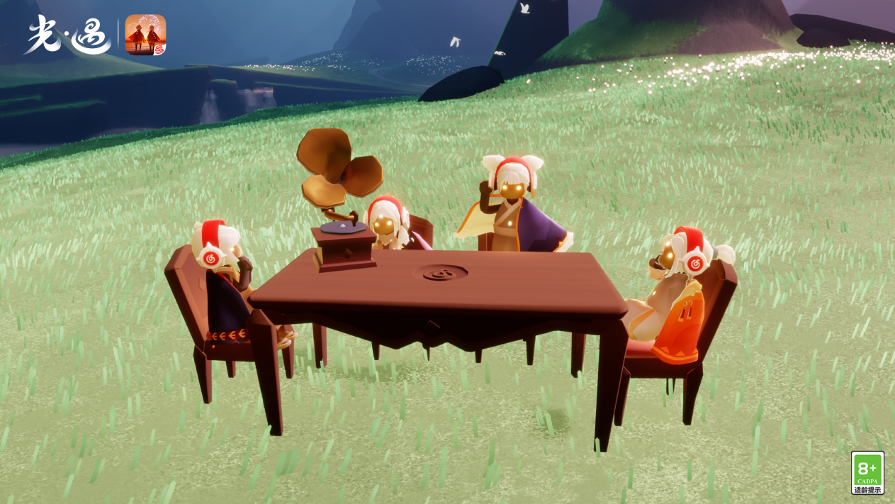 值得一提的是,相比此前的“双人一起听”活动,新的活动赋予了玩家更高的场景自由度。玩家可以通过游戏中的向导传送至“云峰上坡”,操作留声机点播自己中意的音乐,与场景中的先祖和其他旅人共同分享,还可以通过使用特定道具古典音乐桌椅,随时随地开启一段惬意的音乐交友之旅。当曲库中的海量音乐搭配上游戏中千变万化的各路风景,自然可以给旅人们带来更为丰富的情感体验。