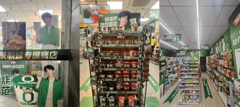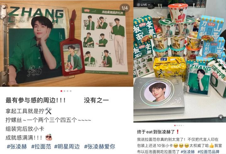 作为原以线上电商为主的快消速食,拉面范为本次官宣打造了全国20家拉面范x张凌赫主题专属“痛店”,给粉丝带来了线上+多维度的沉浸式活动体验,让粉丝感受到来自品牌的独家宠爱。各主题店通过墙贴、品牌专区打造、人型立牌、留言墙、购买产品送周边等多种形式,全面有效展示了新代言人,吸引粉丝与路人积极创作打卡图文,进一步助推品牌声量。