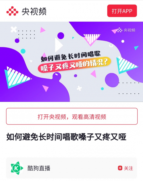 酷狗直播学院不仅是在指导有音乐梦想的主播,从知识传播的角度来看,这些经过设计的专业课程,对于很多普通的唱歌爱好者也是开放共享的,此次入驻央视频就是要进一步扩大酷狗直播学院音乐课程的影响力,让广大用户可以更加便捷地订阅。目前已发布的视频可以看到,虽然是以短视频的方式呈现,但每一节课都是针对日常唱歌问题做出细致讲解,例如《不会唱假声怎么办?一个“呜”字帮到你》《如何避免长时间唱歌嗓子又疼又哑》,深入浅出,无论是音乐从业者还是普通网友,都能从中获益。